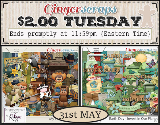 It's $2 Tuesday at Scrapbookcrazy Creations Gingerscraps Store. This weeks specials are